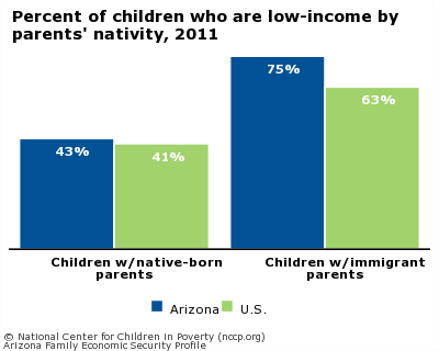 Low wages and a lack of higher education contribute to families having insufficient incomes. Nationally, 48 percent of low-income children have at least one parent who works full-time, year-round; in Arizona, the figure is 50 percent.