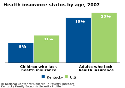 - Figures reflect the percent of of children (under age 18) and adults (ages 18-64) who did not have health insurance coverage at any point during the year.