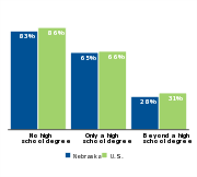 Parents without a college education often struggle to earn enough to support a family, but only 27 percent of adults in Nebraska have a bachelor’s degree. A substantial portion of children in Nebraska whose parents only have a high school diploma65 percentare low income.