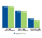 Parents without a college education often struggle to earn enough to support a family, but only 22 percent of adults in Oklahoma have a bachelor’s degree. A substantial portion of children in Oklahoma whose parents only have a high school diploma67 percentare low income.